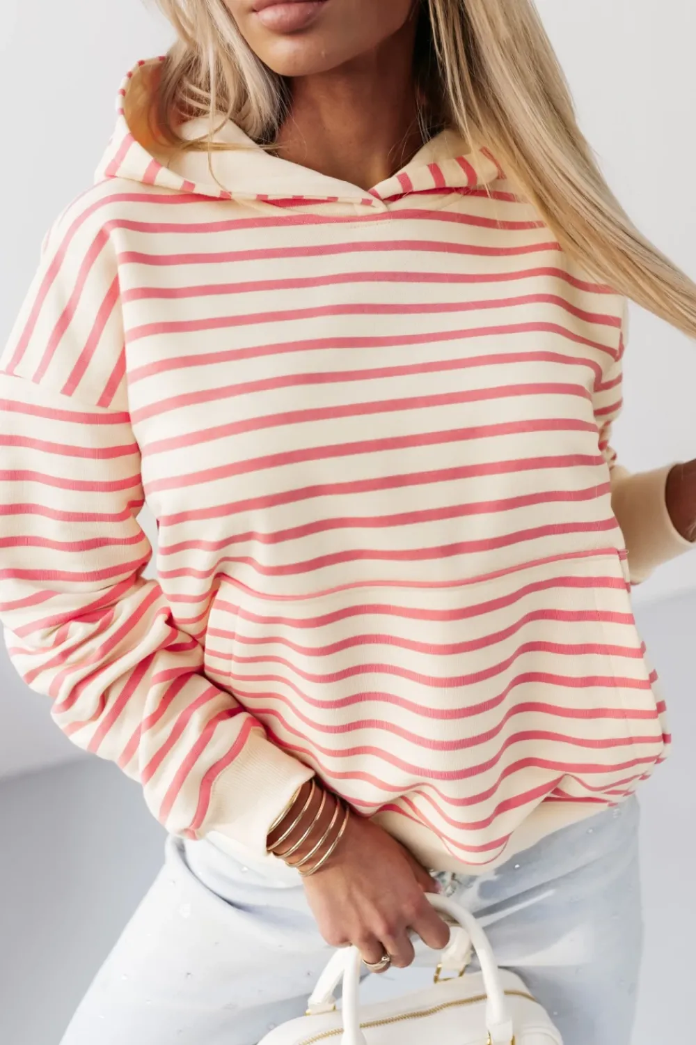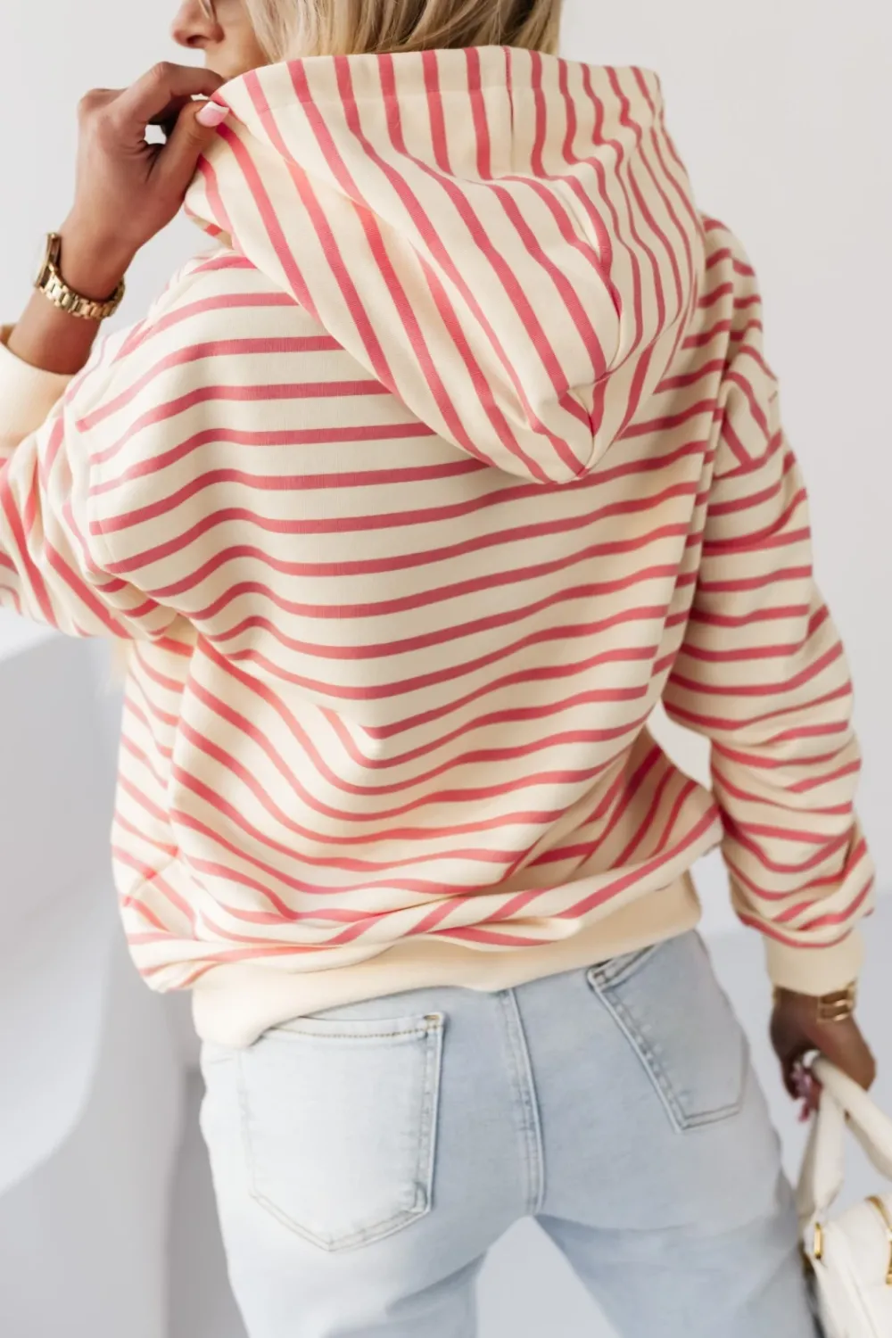CandyTM BLUZA BAWEŁNIANA RAPLH Z KAPTUREM W PASKI ECRU-MORELOWE