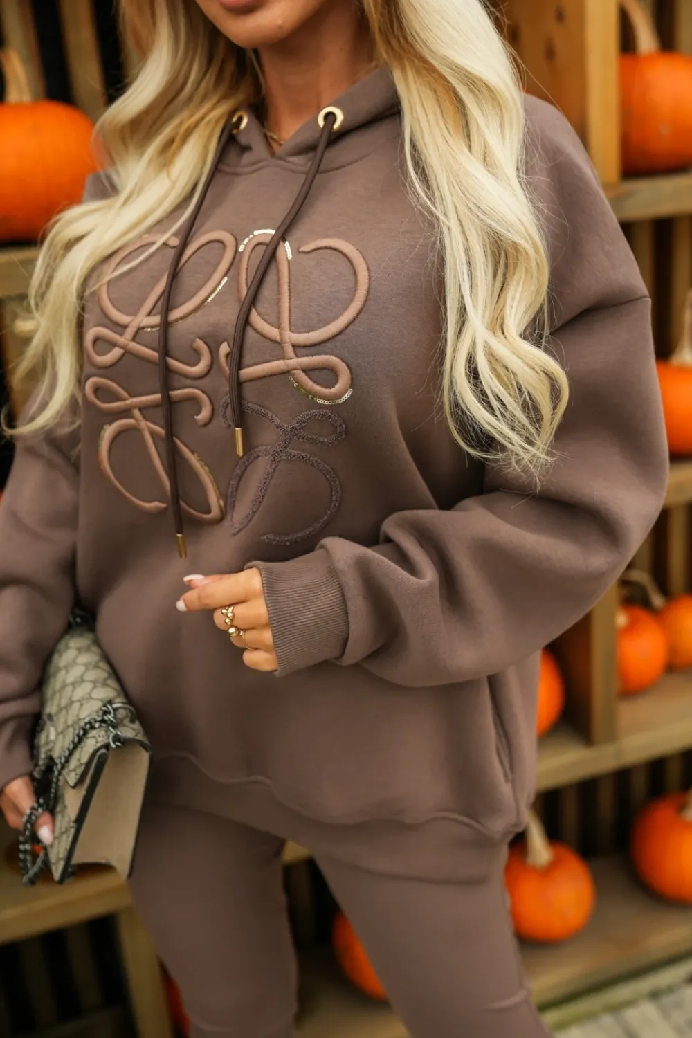 CandyTM BLUZA DRESOWA BAWEŁNIANA KLOE Z KAPTUREM BRĄZOWA