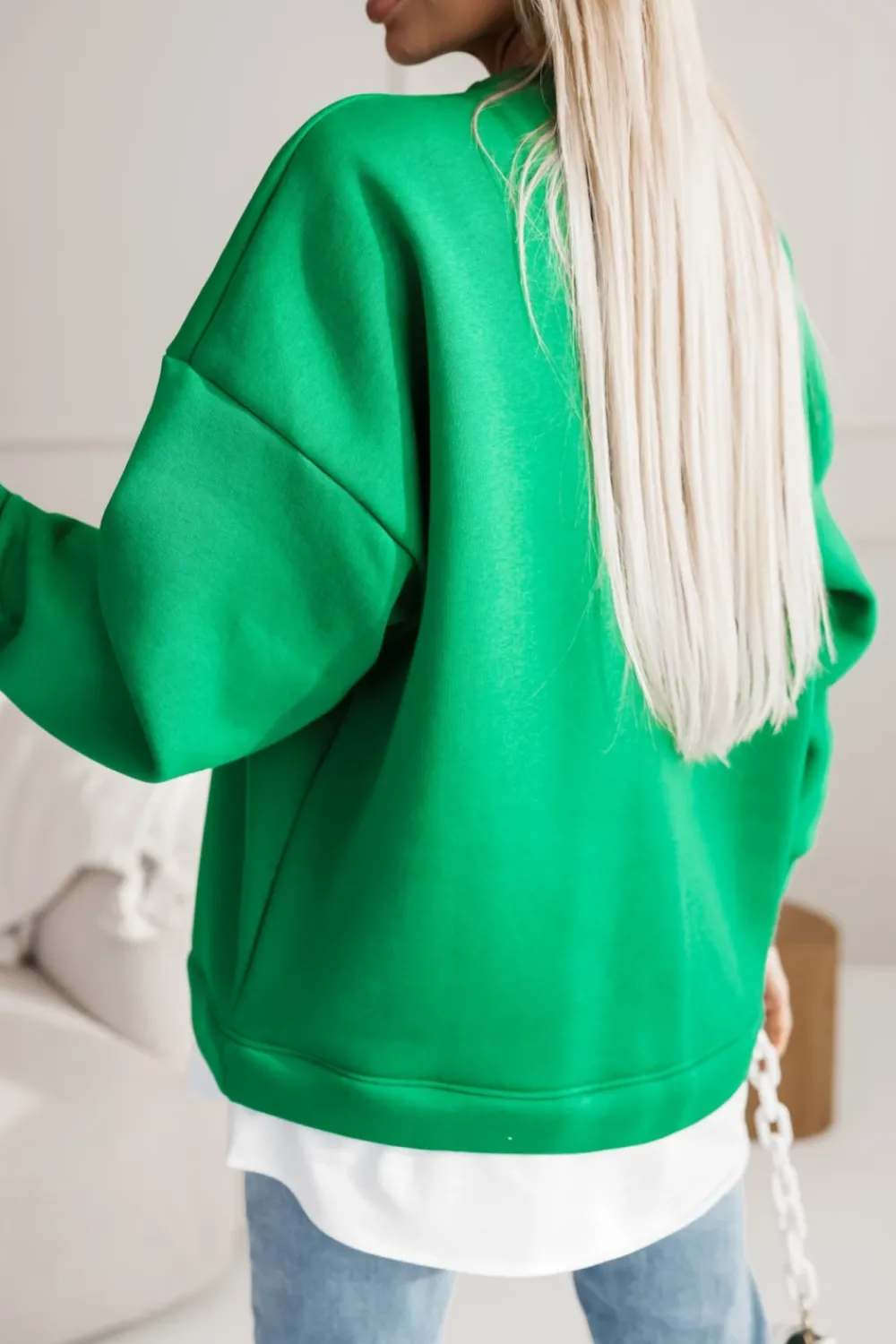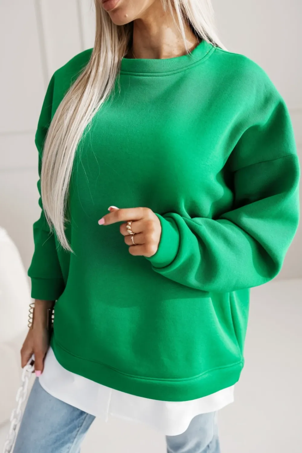 CandyTM BLUZA DRESOWA BAWEŁNIANA OCIEPLANA Z KOSZULOWĄ WSTAWKĄ ZIELONA