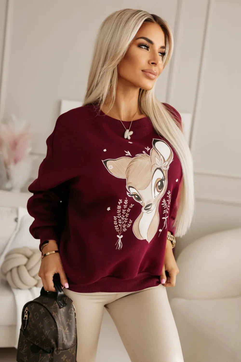 Klasyczna bluza z długim rękawem wykonana z materiału na ocieplinie. Posiada oryginalny nadruk na środku. Idealnie sprawdzi się do wszelkiego rodzaju stylizacji.