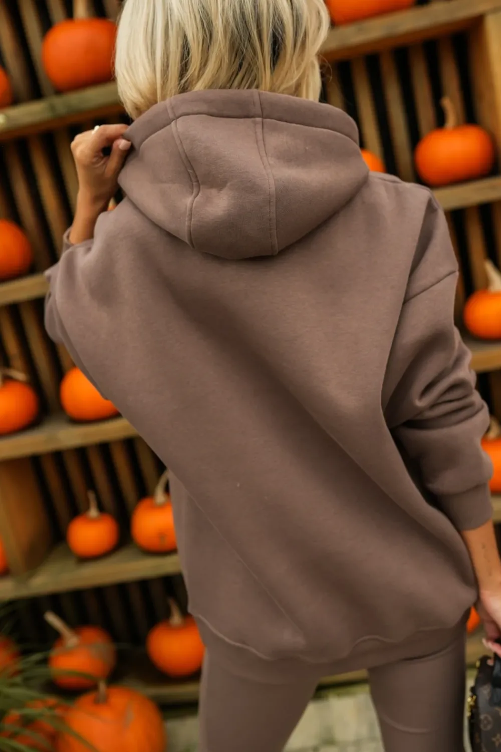Bluza oversize ocieplana, stworzona z myślą o komforcie i swobodnym stylu. Wyposażona w praktyczny kaptur regulowany troczkami oraz boczne kieszenie. Na środku zdobi ją naszywka w kształcie Myszki Miki, która nadaje całości oryginalnego i młodzieżowego charakteru. Dół i długie rękawy wykończone są ściągaczami, dzięki czemu bluza dobrze układa się na sylwetce i zapewnia wygodę noszenia.