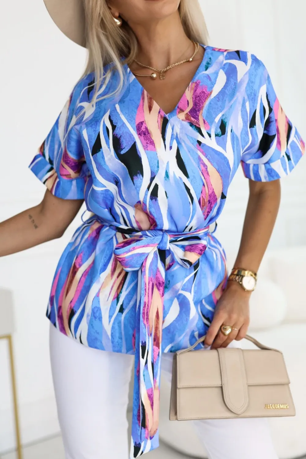 CandyTM BLUZKA ALICE Z KRÓTKIM RĘKAWEM Z KOPERTOWYM DEKOLTEM NIEBIESKO-BIAŁA
