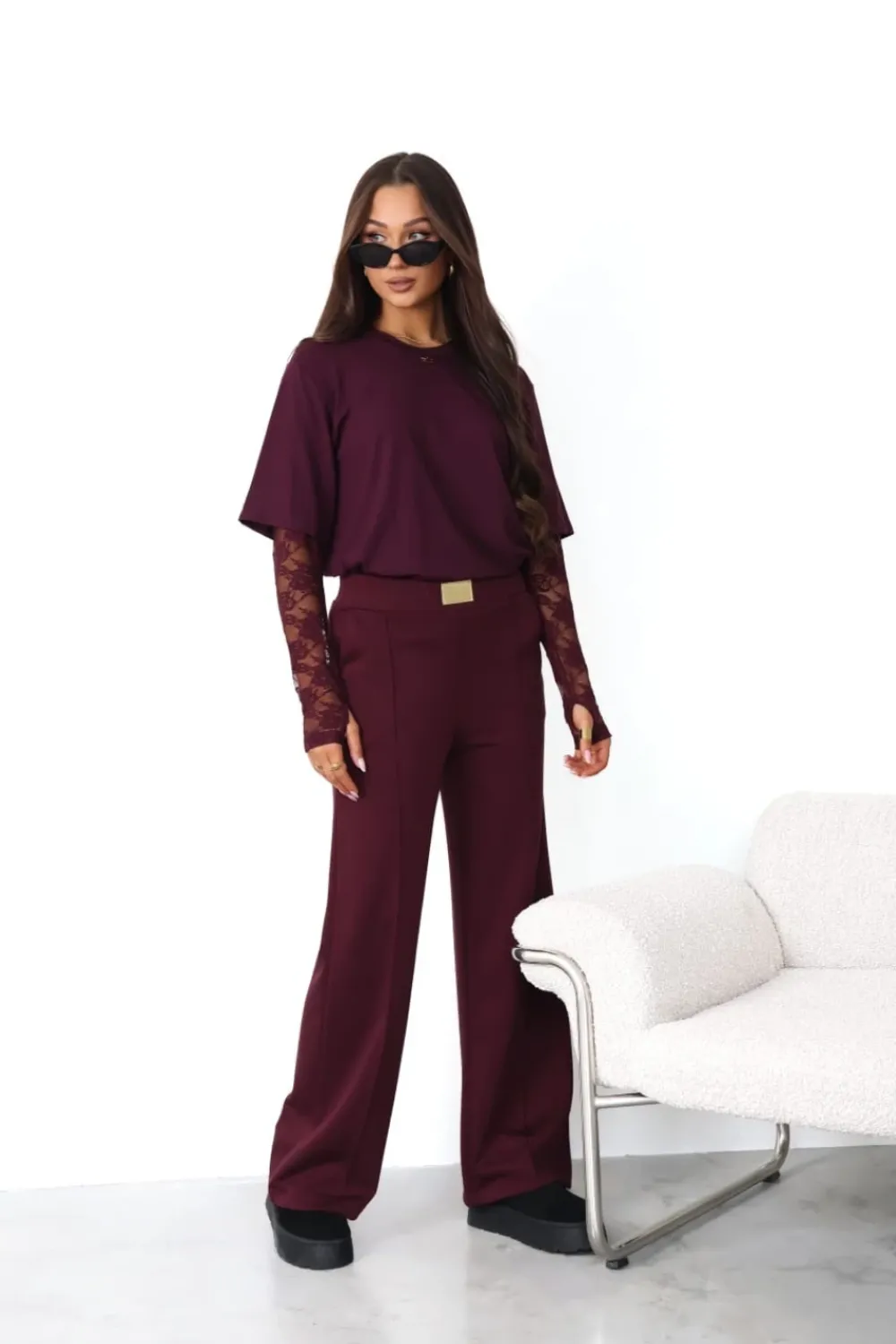 Oversize’owa bluzka z łączonych materiałów to wyjątkowe połączenie wygody i stylu. Pod okrągłym dekoltem znajduje się subtelna, ozdobna przywieszka, która dodaje całości elegancji. Długie, koronkowe rękawy z otworem na kciuk nadają bluzce oryginalnego charakteru i podkreślają kobiecy styl. Idealna na co dzień i na specjalne okazje.