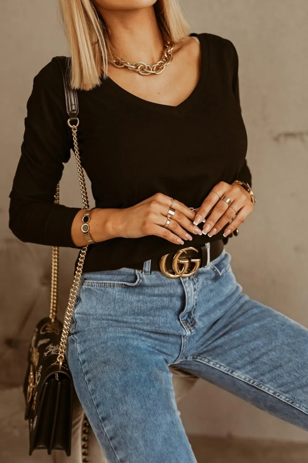 CandyTM BLUZKA BASIC V DEKOLT CZARNA