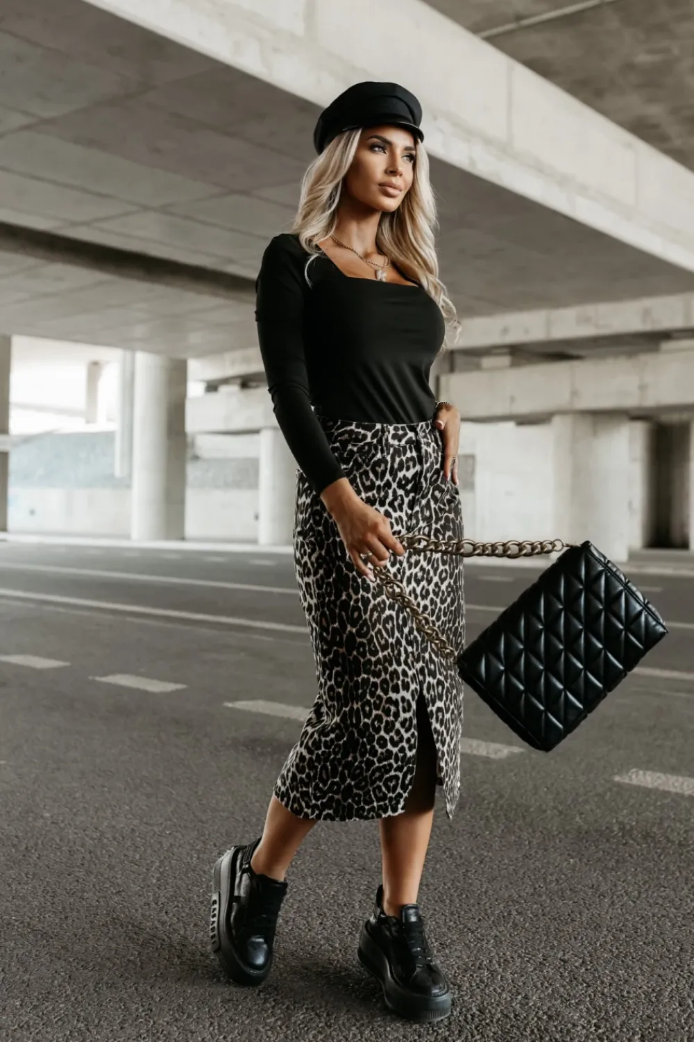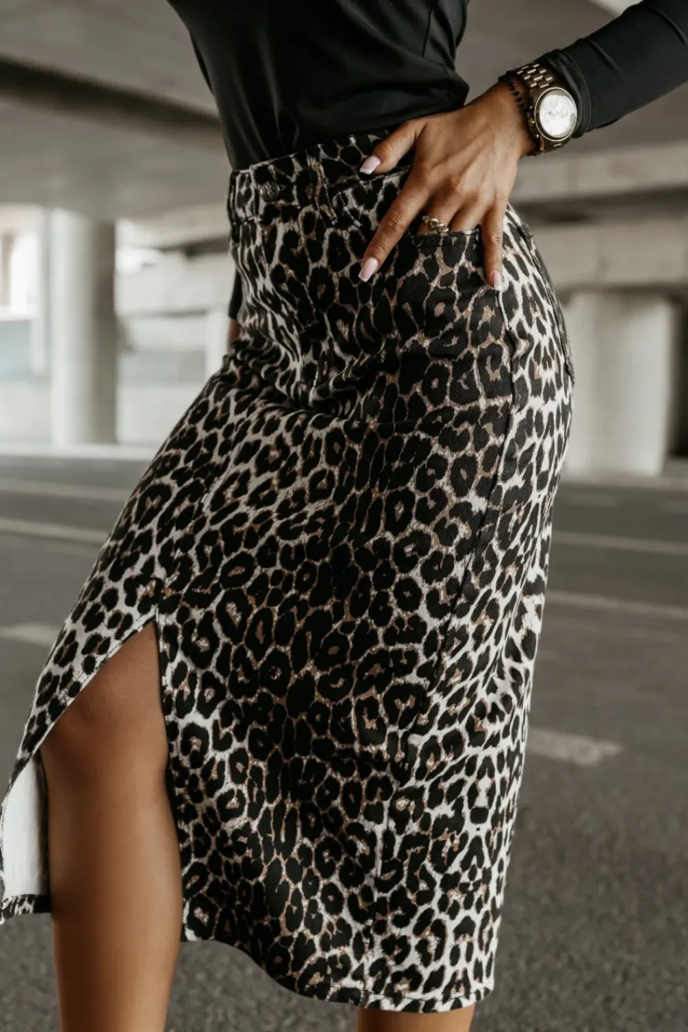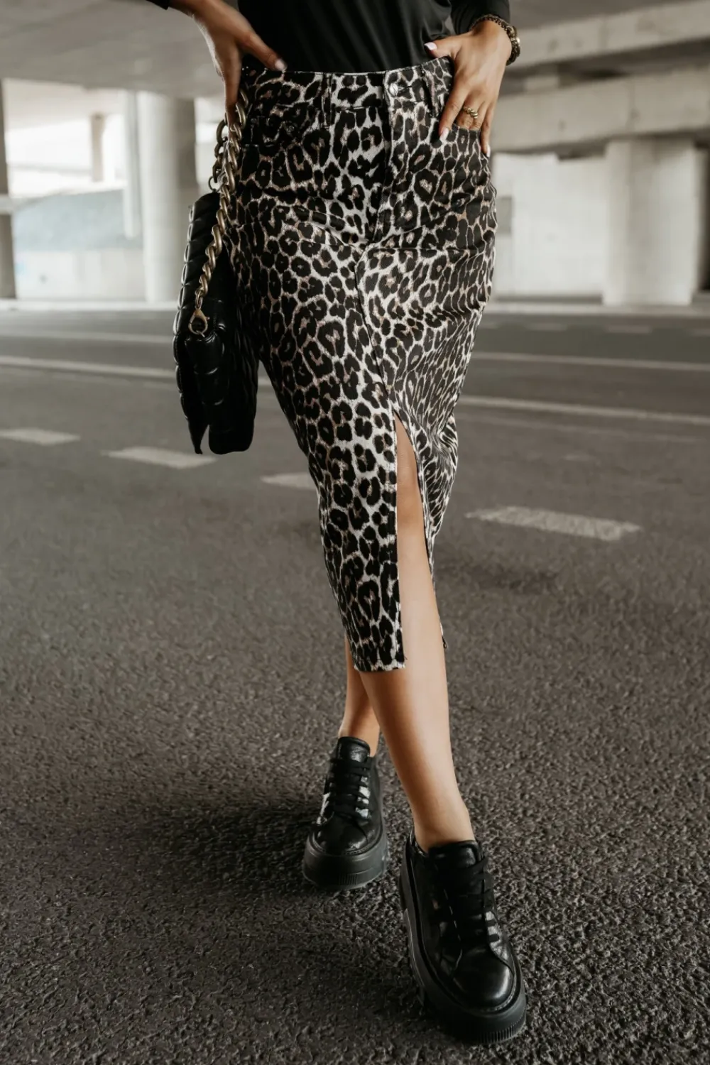 Stylowa jeansowa spódnica midi w zwierzęcy wzór, która przyciąga uwagę i nadaje charakteru każdej stylizacji. Posiada rozcięcie z przodu, dodające jej lekkości i nowoczesnego akcentu. Zapinana na guzik i zamek, z klasycznymi szlufkami umożliwiającymi noszenie paska. Wyposażona w standardowe kieszenie z przodu i z tyłu, które zapewniają funkcjonalność. To wyjątkowy wybór dla osób ceniących modny, a jednocześnie wygodny styl, idealny na co dzień i wyjątkowe okazje.