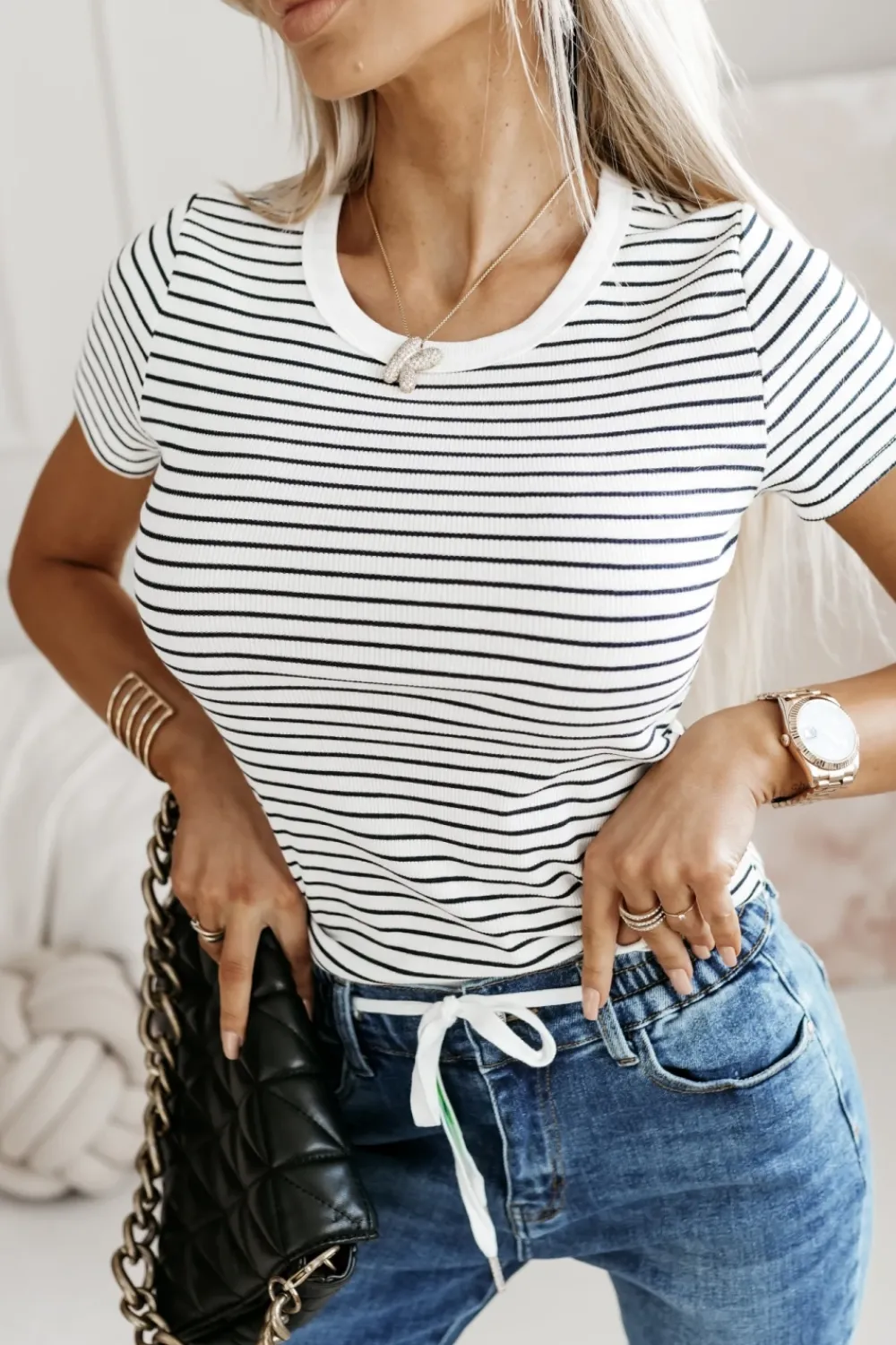 CandyTM T-SHIRT CLASSIC W PASKI ECRU-CZARNE