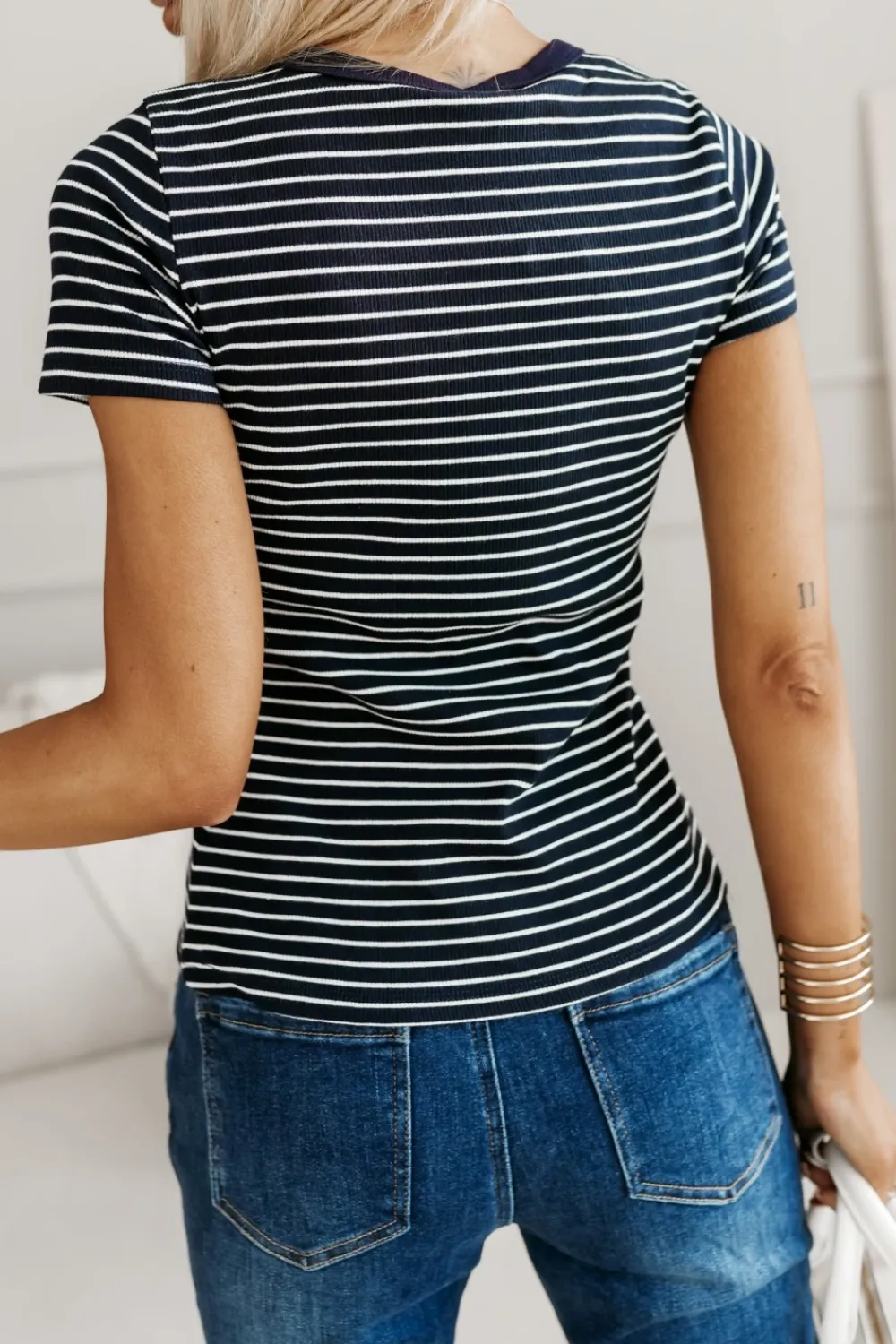 CandyTM T-SHIRT CLASSIC W PASKI GRANATOWO-BIAŁE