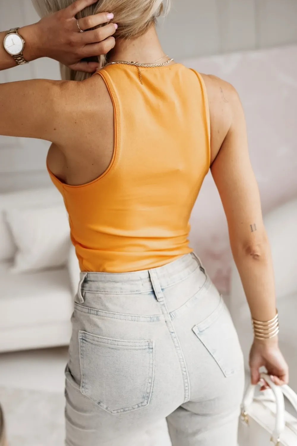 Top z okrągłym dekoltem pod szyję. Jego klasyczny, prosty krój sprawia, że bluzeczka będzie idealna do większości stylizacji, casualowych np. z kardiganem, jeansami i balerinkami, po bardziej eleganckie, choćby marynarką z cygaretkami i szpilkami.